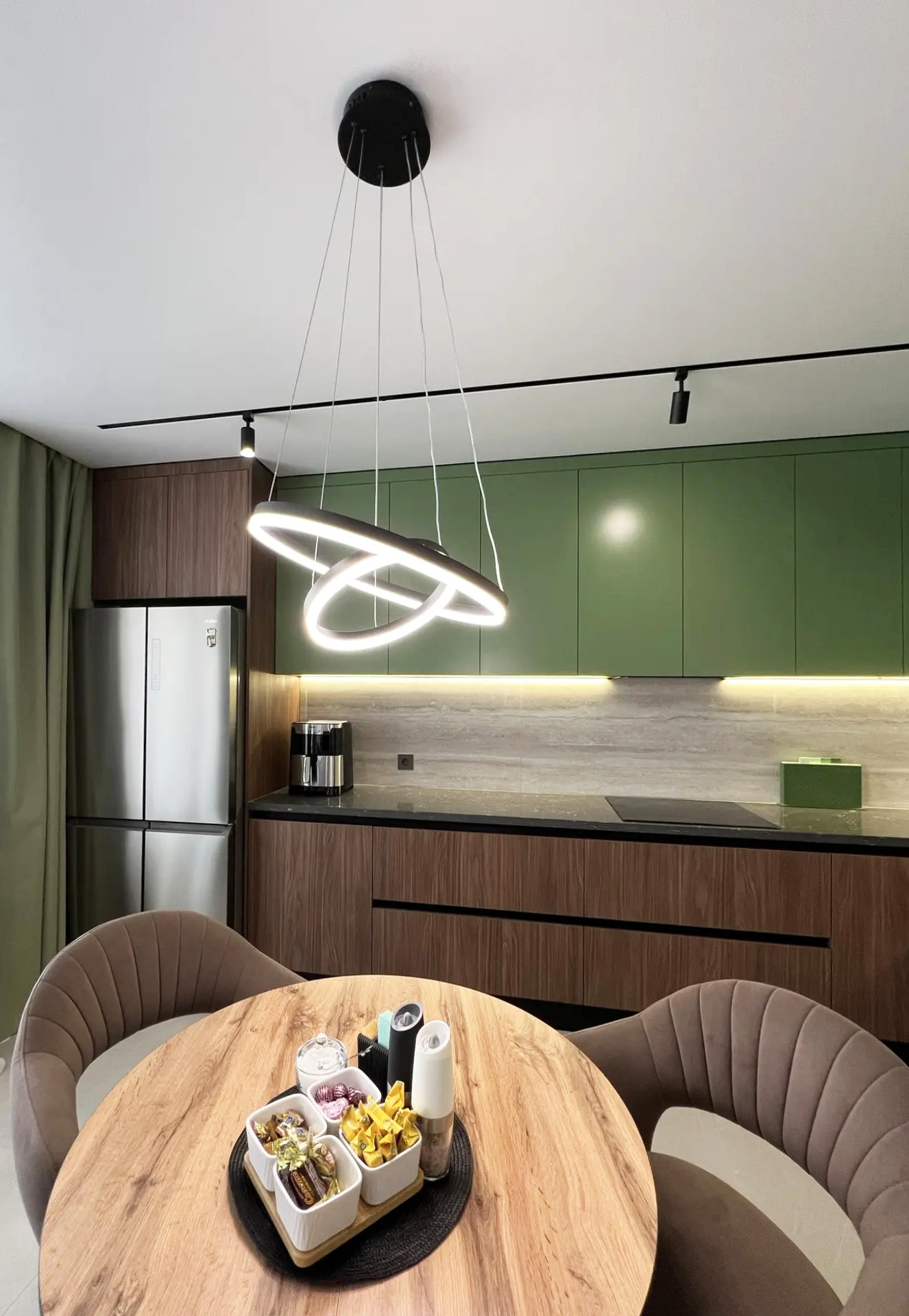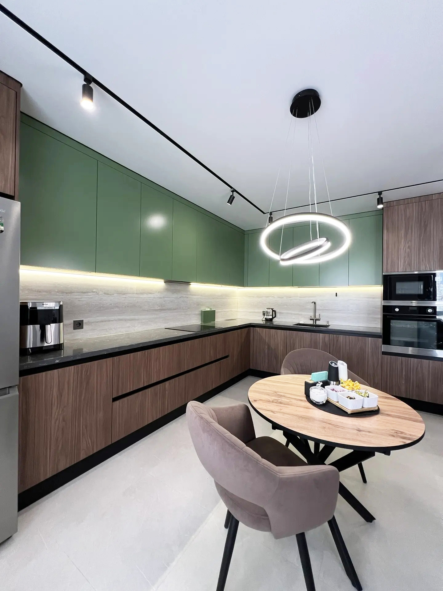 О проектеОписаниеКухня в современном стиле: гармония природы и свежести.